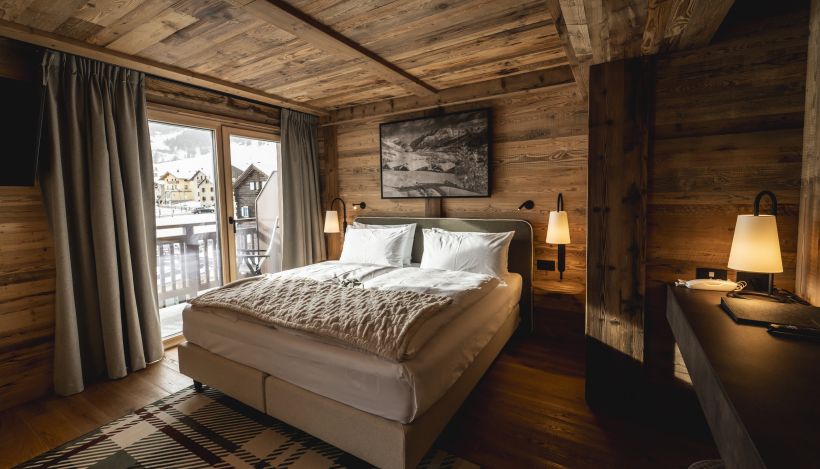 Larger than the Superior Double Room, the Superior Deluxe Room is designed for those who want space, comfort and modern alpine style. The natural wood finishes and warm tones create a cosy and relaxing atmosphere.